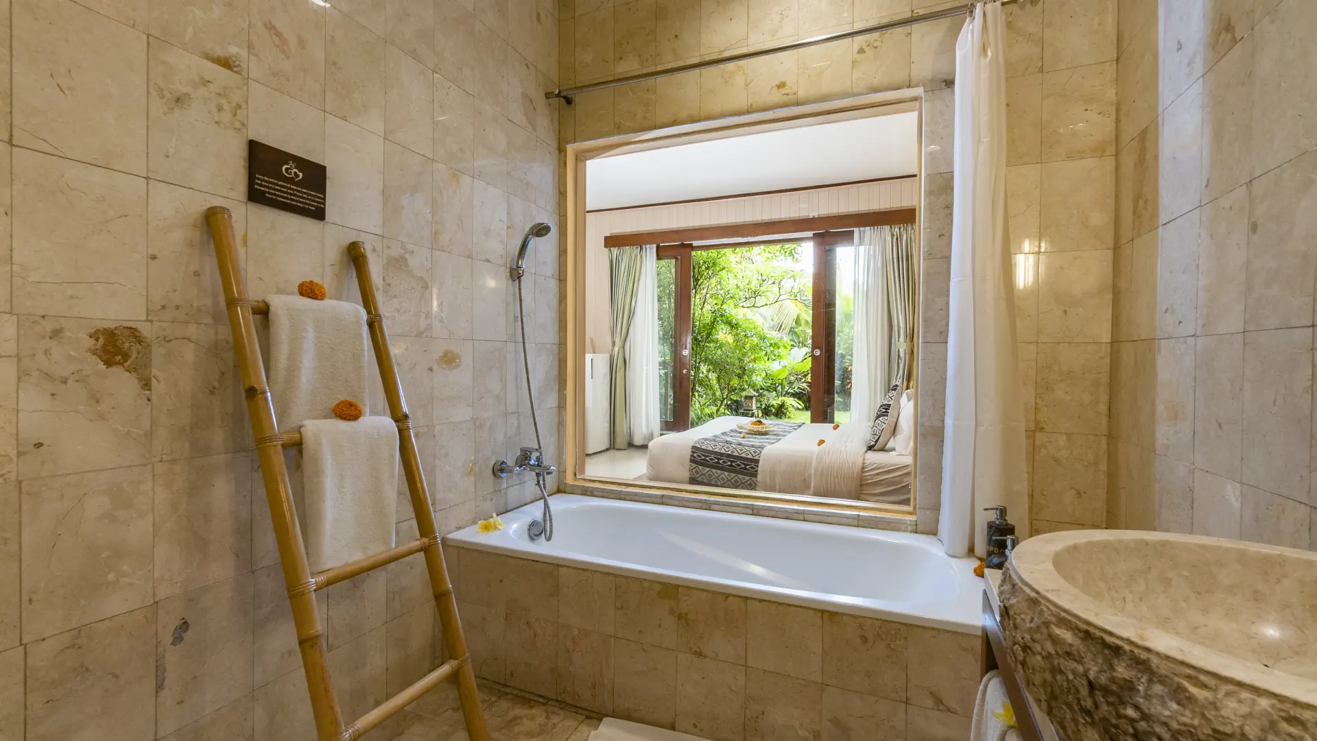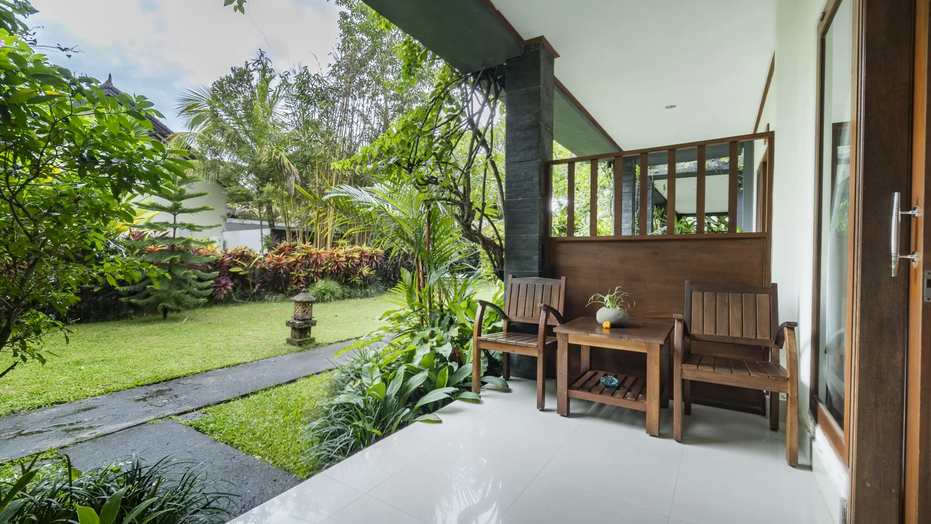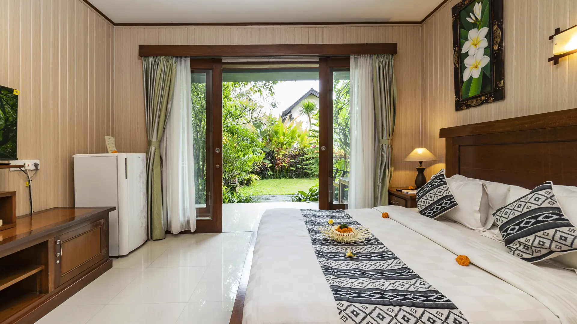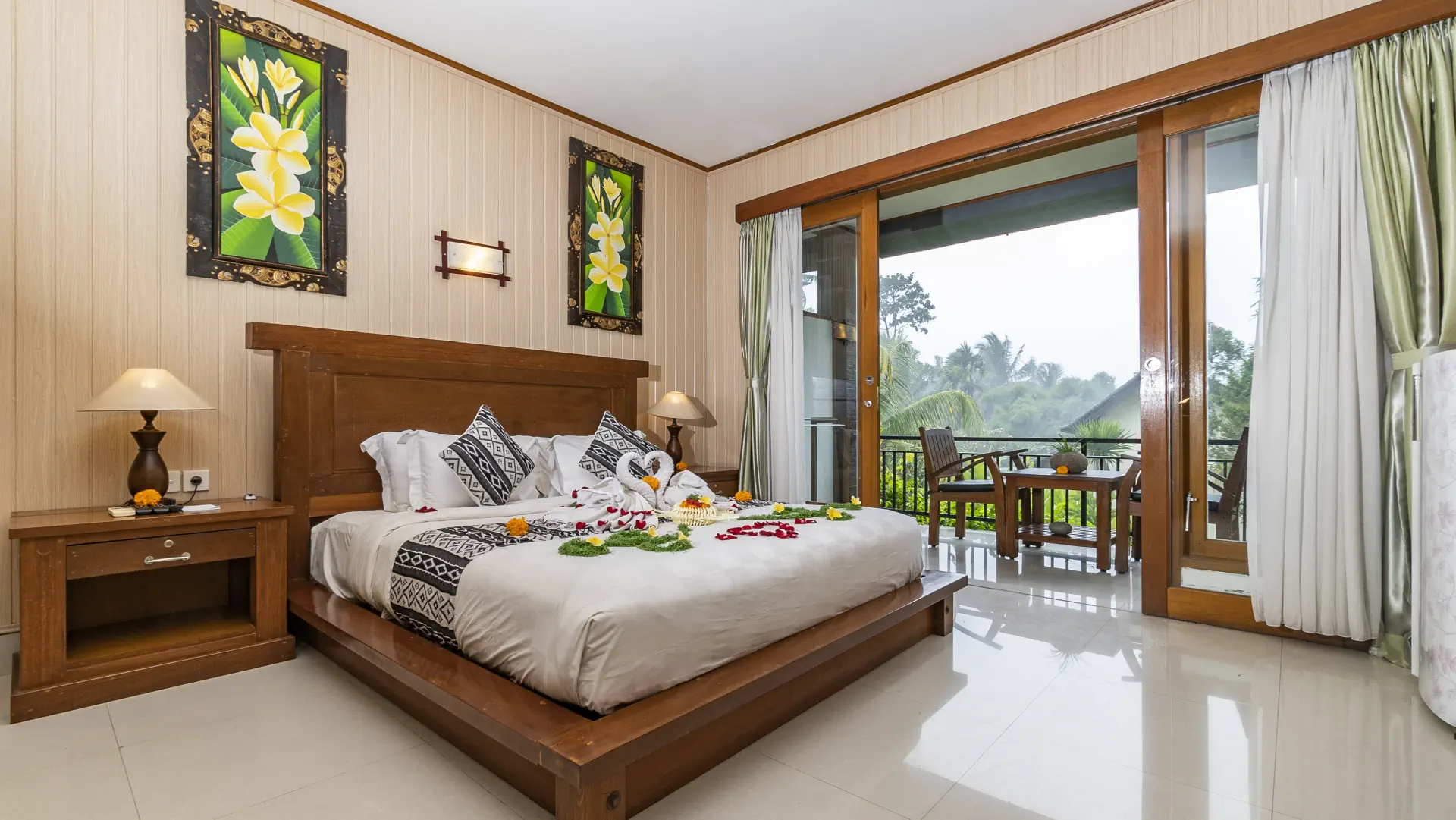 Available with a Queen-size bed or Twin Hollywood. Choose a ground-floor room with a garden view and effortless access either from the corridor or directly through your private balcony, which also connects to the main swimming pool; or opt for a second-floor room with a private balcony accessed from the corridor, perfect for quiet moments while enjoying elevated views of the rice fields and tropical garden.