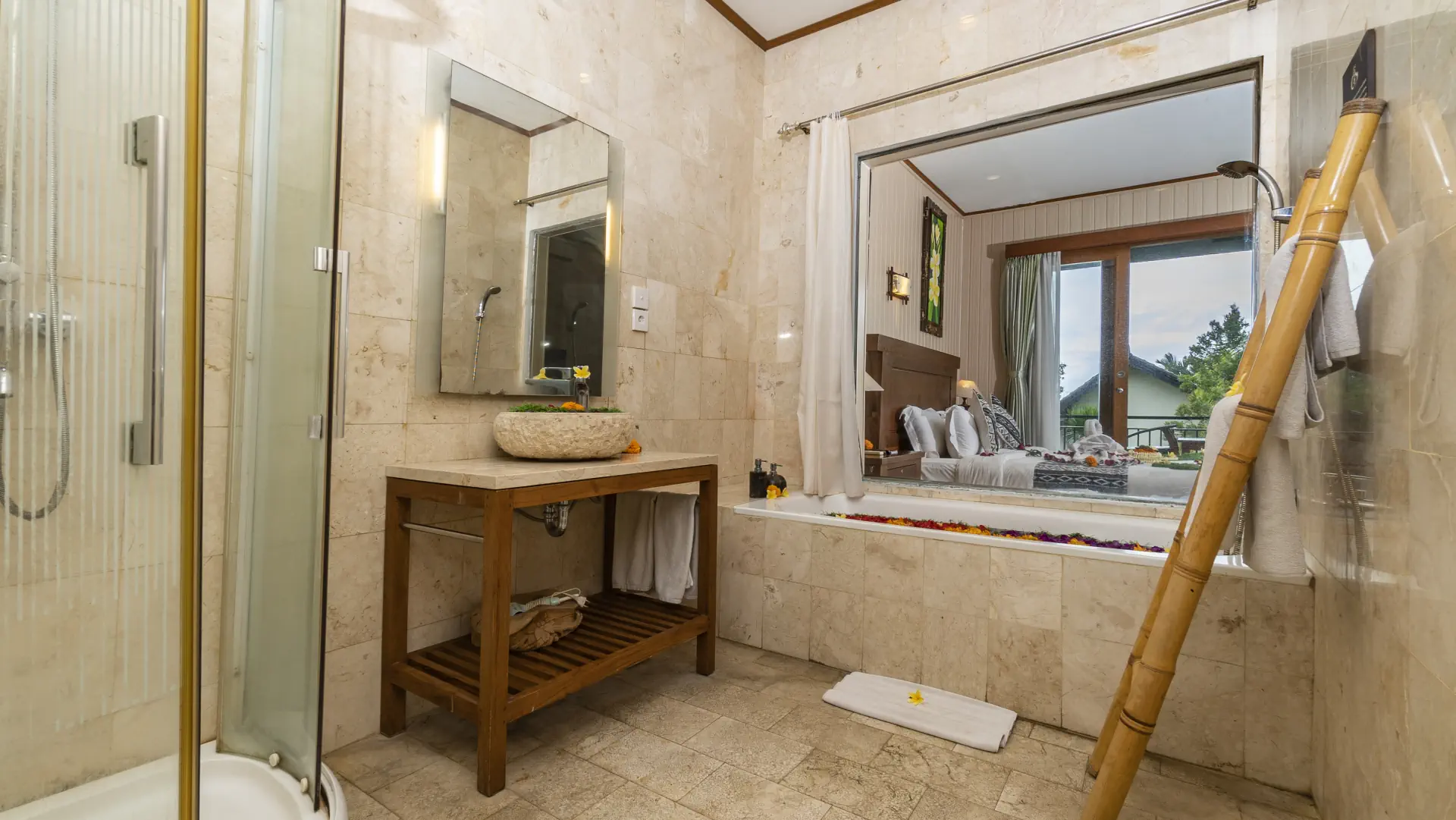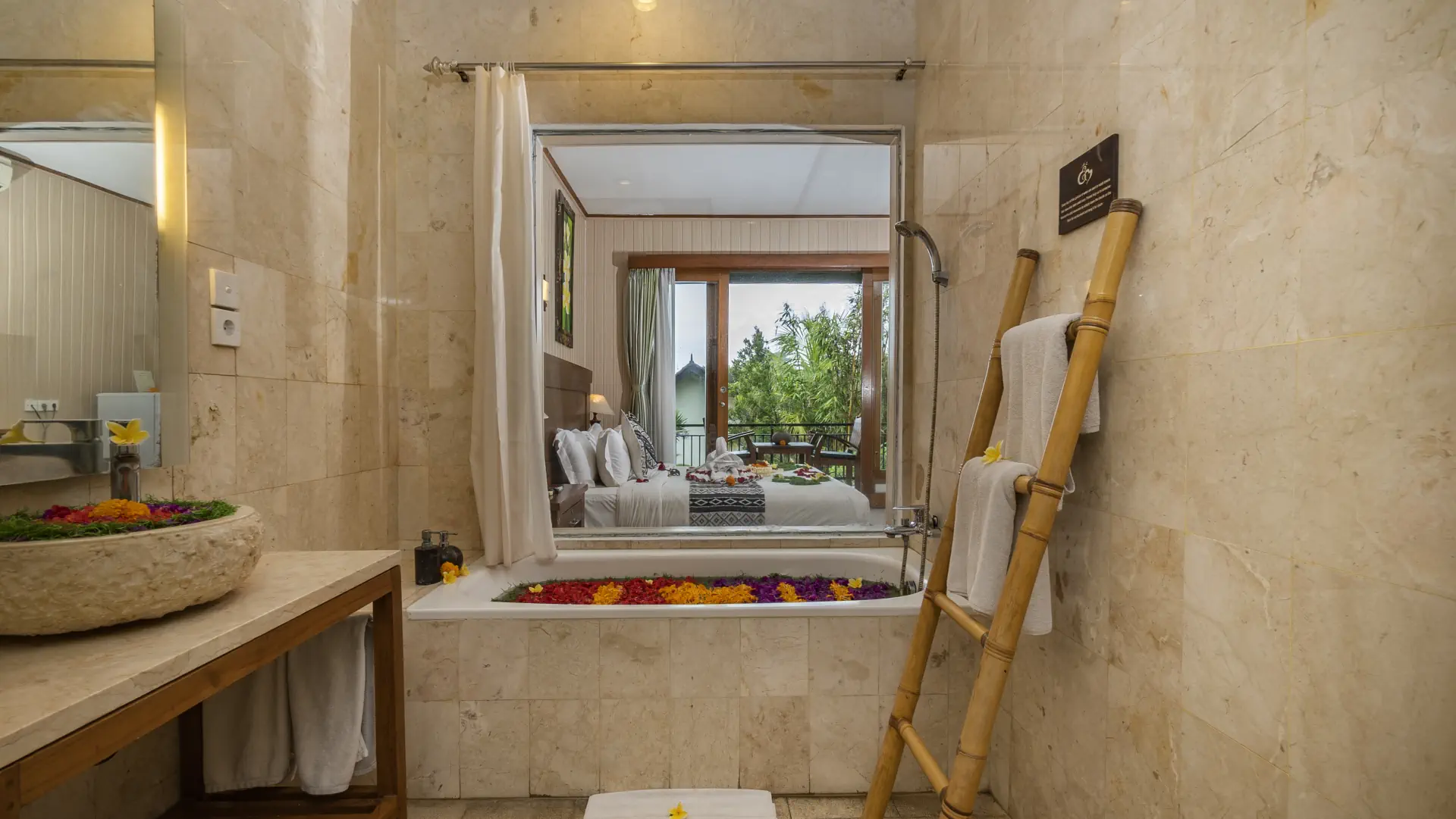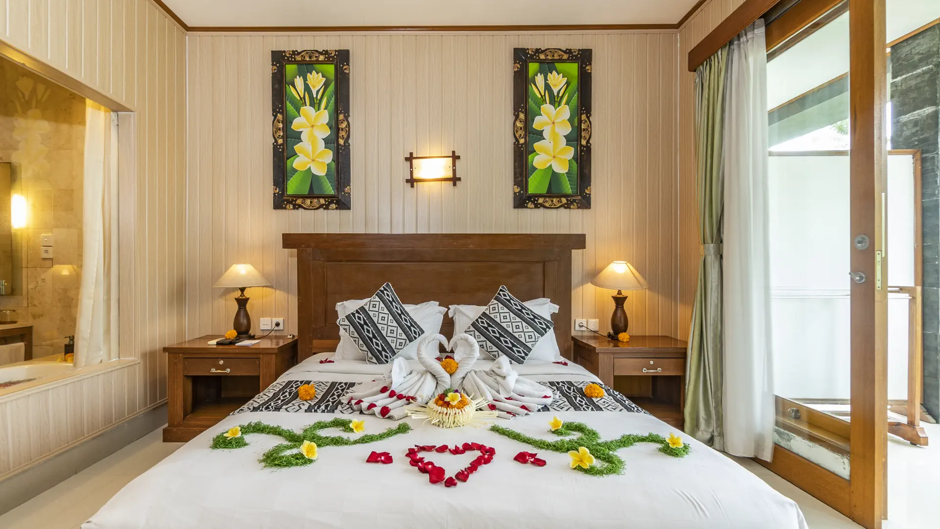 Available with a Queen-size bed or Twin Hollywood. Choose a ground-floor room with a garden view and effortless access either from the corridor or directly through your private balcony, which also connects to the main swimming pool; or opt for a second-floor room with a private balcony accessed from the corridor, perfect for quiet moments while enjoying elevated views of the rice fields and tropical garden.